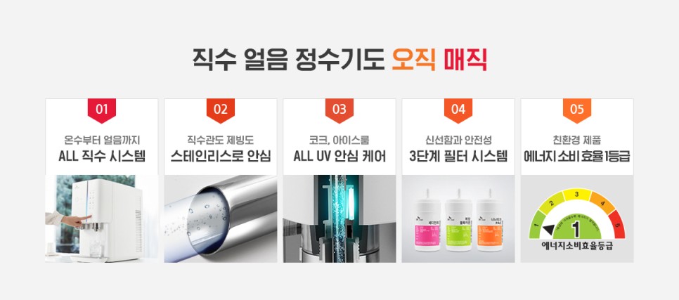 얼음까지 ALL 직수로 깨끗하다는 점이에요!