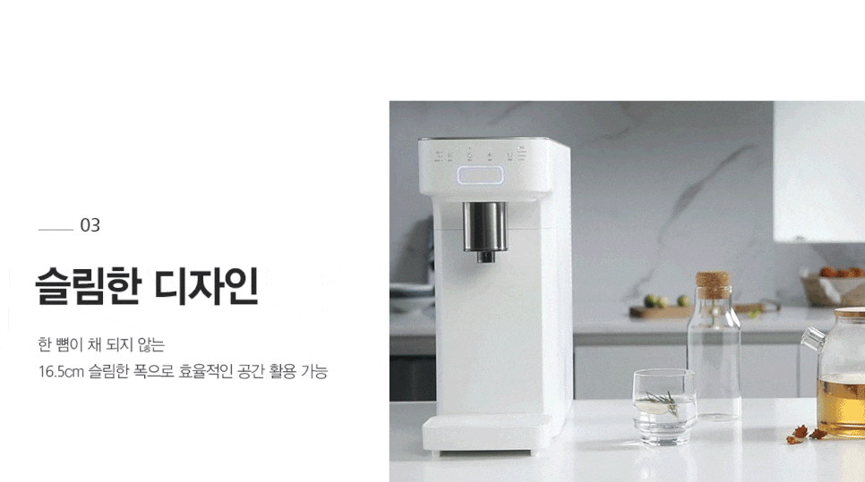 슬림한 디자인으로 설치공간 제약없이 주방공간을 활용할수있으며