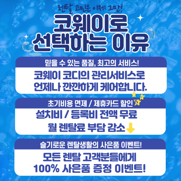 오늘 여러분들께 광양코웨이비데렌탈을 소개해드리기 위해 준비했습니다!