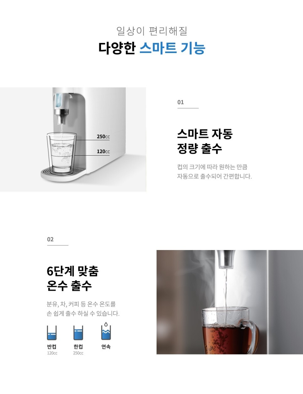 두번째는 6단계 맞춤 온수 출수가 있습니다.