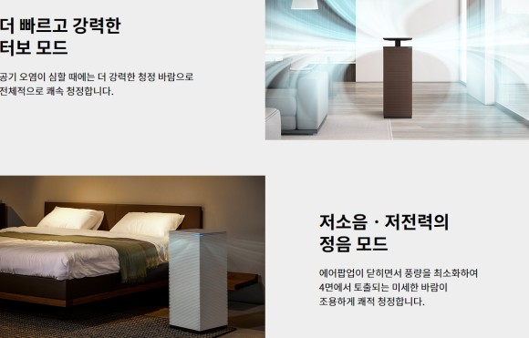 노블 공기청정기는 에어팝업모션을 갖추고 있기 때문에
