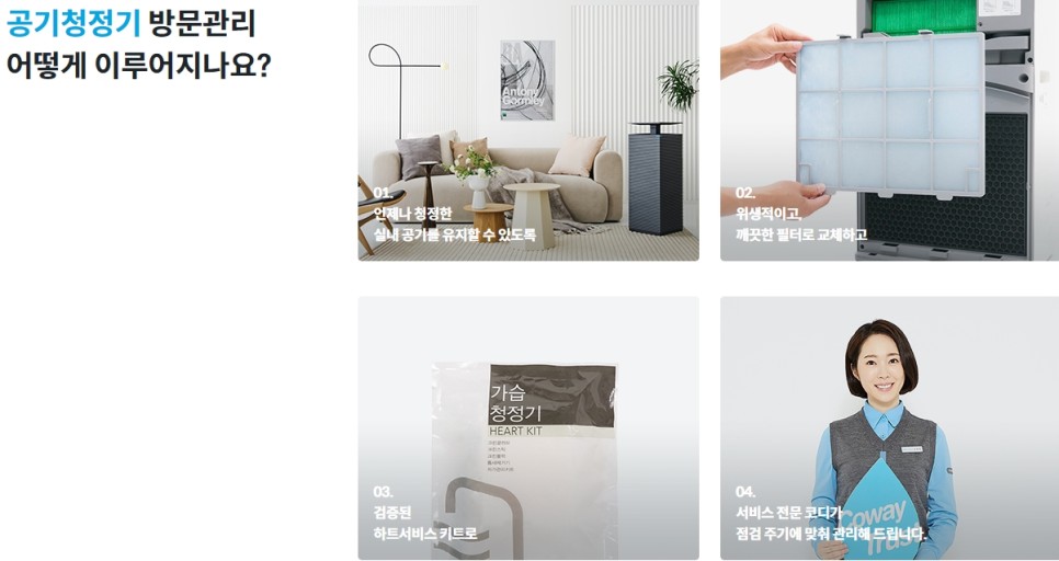코웨이에서 주기에 맞게 필터를 배송해드리며,