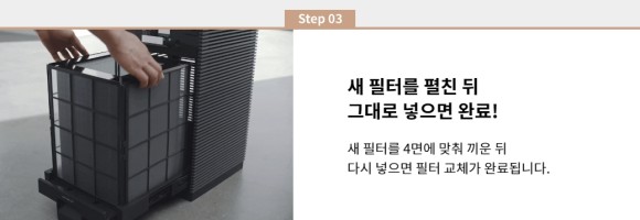 새 필터를 펼저준뒤 4면에 맞추어 슥 넣어주기면 하면 끝이에요!