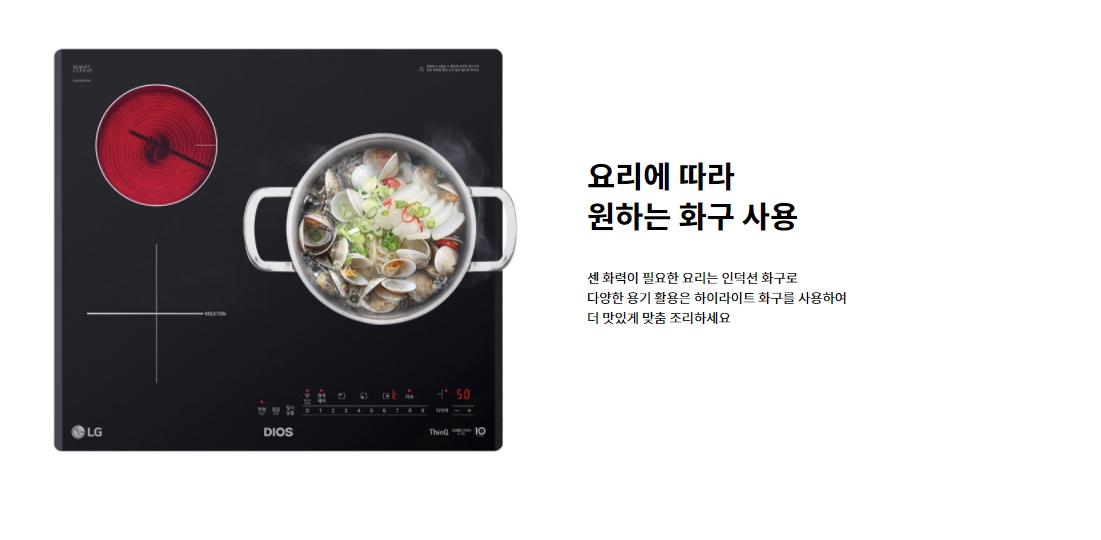 그래서 이제는 센 화력은 인덕션, 다양한 용기는 하이라이트로