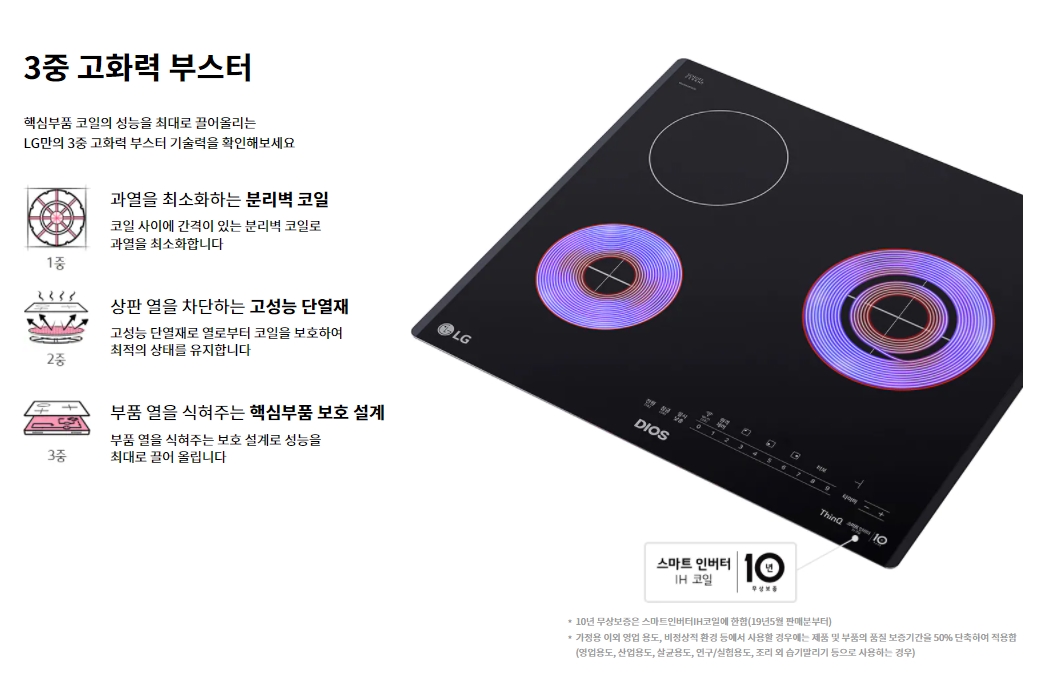 핵심부품 IH코일은 10년동안 무상보증까지 해드리고 있으니