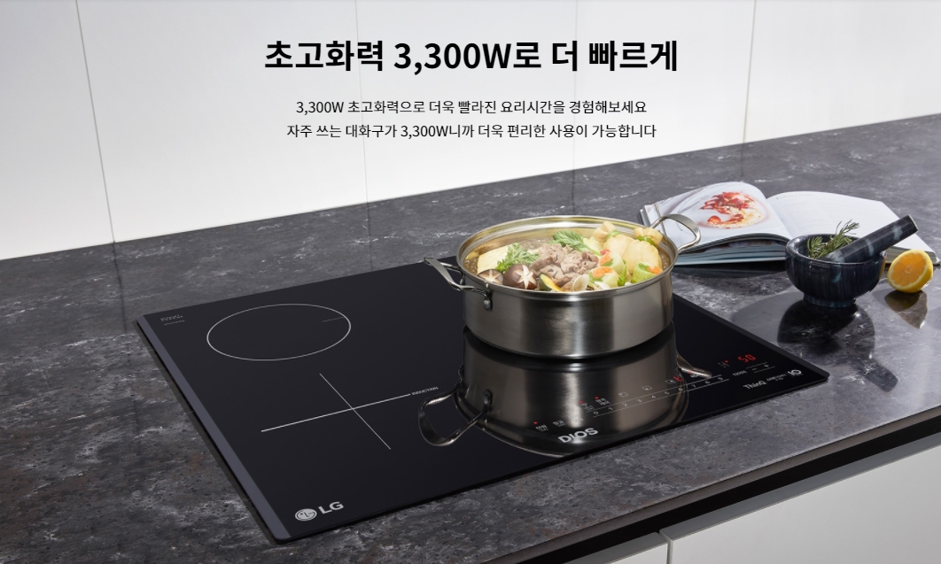 이제는 3,300W의 초고화력으로 더 빨라진 요리시간을 경험해보실 수 있습니다~