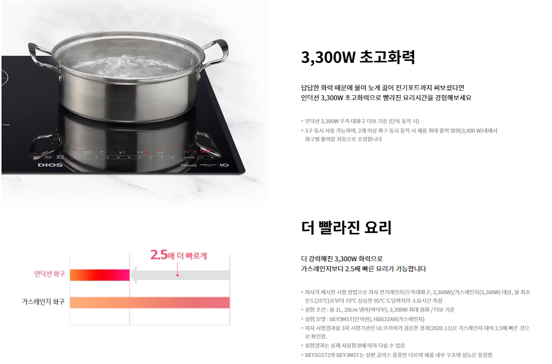 이제는 3,300W의 초고화력으로 더 빨라진 요리시간을 경험해보실 수 있습니다~