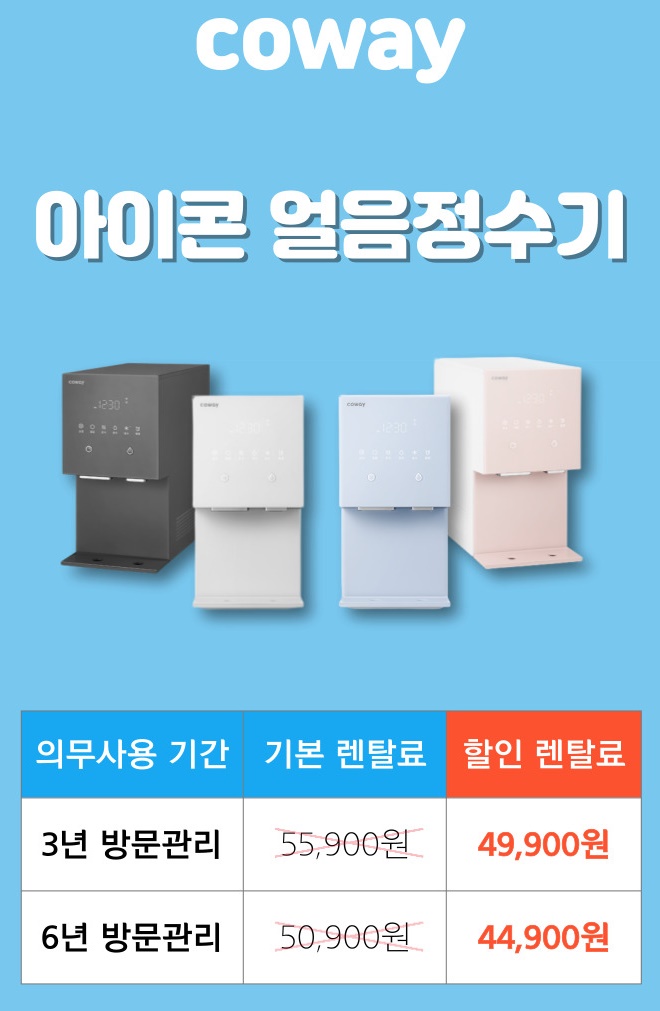 안녕하세요! 코웨이에서 아이콘 정수기가 최고의 인기를 누리고 있었는데요 이번에 더 새롭게 아이콘정수기2가 출시되었어요! 제가 포스팅을 하기 위해서 한번 살펴봤는데 진짜 기능 대박이고 어떻게 이렇게 더 완벽하게 출시될 수 있는지 역시 코웨이구나! 라고 생각이 들었는데요! 그래서 오늘 여러분들과 함께 아이콘정수기2의 새로워진 점들을 함께 알아보려고 합니다! 요즘 일상생활에 편리함을 주는 가전들이 많아지게 되면서 주방에 놓을 가전들도 다양해졌는데요. 그 중에서도 저는 정수기가 가장 중요하고, 또 가장 많이 찾는 주방 가전이라고 생각을해요! 그래서 코웨이에서는 필수적인 정수기를 설치하면서도 주방 공간이 더 여유로울 수 있도록 크기가 정~~말 작은 정수기인데요! 놀라지마세요! 정수기 깊이 사이즈가 25cm밖에 되지 않아요! 어떻게 이렇게 작게 만들었을지 대단하다고 느껴지네요. 정수기에서 가장 오염되기 쉬운 부분이라고한다면 공기나 먼지가 맞닿을 수 있는 파우셋인데요. 그래서 살균-세척-교체 3단계 완벽한 파우셋 위생관리가 이루어집니다. 사용자가 따로 신경을 쓰지 못하더라도 정수기가 알아서 살균을 해주는데요! 물을 추출 후 매번 살균을 해주고 취침시간이나 외출때에 정수기를 사용하지 않아도 6시간마다 알아서 UV 살균을 해줍니다. 이미지에 보이는것 처럼 파우셋을 정수기 윗면에서 위로 뽑아서 분리할 수 있어서 수시로 세척할 수 있어요 그리고 파우셋 전체는 안전한 트라이탄 소재로 되어있는데요! 이 소재의 장점은 환경 호름 걱정도 없어서 신생아에게도 안전한 친환경 소재이며, 강한 내열성과 내구성을 보여주어 오래도록 깨끗하게 사용할 수 있어요. 기능이 대박인게 원래는 정수기에서 보통 85℃ 정도되는 온수를 사용할 수 있었는데요. 이 때문에 정수기를 통해서 컵라면에 온수를 받을때에 다소 부족한 온도로 덜 익거나하여 제대로 이용하지 못했었는데 이제는 정수기에서 약 100℃의 초고온수도 빠르고 풍부하게 이용할 수 있어서 단점을 없애주었습니다! 초고온수 뿐만 아니라 4단계 맞춤 온수로 되어있으며 용량 맞춤 출수도 my용량이 추가되어 총 5단계 정량 출수가 가능합니다. 정수기 관리가 더욱 쉬워진 이유는 주요 부품은 원터치로 간단하게 교체할 수 있으면서 필터 교체 주기와 필터세척은 정수기가 알아서 다 해주기 때문인데요! 정수기에서 가장 중요한 필터 관리를 할때에 사용자가 따로 신경쓰지 않고 있어도 필터교체주기를 정수기가 파악하여 안내해줍니다! .주기적으로 필터를 교체해주면서 깨끗한 수질을 유지할 수 있으며 자가관리 후 폐필터도 알림톡으로 회수 신청을 하면 코웨이가 무상 방문 수거를 도와줍니다. 그리고 평상시에 제품에 이상이 있는지 없는지 수시로 확인할 수 있도록 준비되어있는데요! 만약에 자가관리를 하면서 제품의 이상이 발견되면 간단한 해결방법을 안내해주어 일일이 A/S를 신청할 필요가 없으며 해결되지 않는 고장일 경우에는 센서로 감지한 고장 부위를 고객센터에서 미리 알고있어 신속하고 정확한 A/S 접수가 이루어집니다. 냉수 추출 방식은 컴프레서를 없애고 전자 냉각 시스템으로 되어있어서 조용하게 냉각하여 출수되기 때문에 생활소음도 걱정없으며 온수도 순간 가열로 빠르게 가열하여 에너지도 절감해주고 4단계 온수 기능도 바로바로 이용해볼 수 있어요! 그리고 정수와 온수는 직수이면서 냉수는 저수조 방식이며 물이 닿는 부분이 안전한 소재이기 때문에 걱정없고 냉수를 더 빠르고 풍부하게 출수해주어 코웨이만의 시스템으로 되어있습니다. 정읍코웨이정수기렌탈을 이용하면서 믿을 수 있는 품질은 물론 최고의 서비스와 함께 해볼 수 있는데요! 관리 방식도 고객의 사용 스타일에 따라 선택할 수 있어요. 문제없이 주기적인 방문관리를 받을 수 있다면 방문관리 약정을 선택하면 좋지만 요즘같이 바쁜 일상속에서 시간이나지 않아 제대로된 관리를 받지 못하는 분들이라면 주요 교체 소모품이나 자가관리키트를 택배로 배송받아서 내가 원하는 시간에 관리하는 셀프관리로 선택하여 늘 깨끗한 정수기로 사용하시면됩니다! 제가 오늘 정읍코웨이정수기렌탈 추천을 해드렸는데요! 아이콘 정수기2를 보자마자 기존에도 좋았는데 더 좋아질 수가 있구나 ! 괜히 코웨이가 아니구나 라는 생각이들어서 정읍코웨이정수기렌탈 추천을 꼭 해드리고 싶어서 이렇게 준비했어요! 완벽한 위생뿐만 아니라 디자인까지도 더 특별해진 코웨이 정수기를 제휴카드를 활용하면 최소 실적으로도 매달 13,000원을 할인받을 수 있으니 제휴카드도 꼼꼼하게 확인해보셨으면 좋겟습니다!