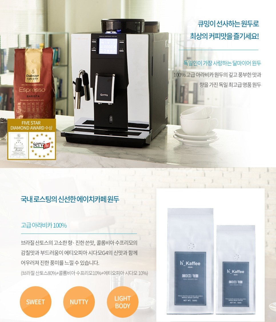 최고의 기술력을 갖추고 있는 큐밍 커피머신은